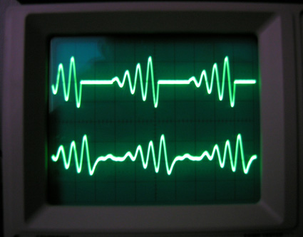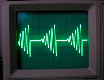 Réponse du haut-parleur de l'Héritage A sur des salves de fréquences rapprochées. On remarquera, malgré le rapprochement des signaux que la pleine énergie est développée dès la première demi-sinusoïde et que l'interruption du signal est instantanée.