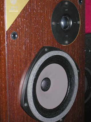 Face avant de l'Héritage A.On pourra voir les haut-parleurs légèrement décalés pour une mise en phase. Le tweeter est encastré à ras la face avant, alors que le haut-parleur principal est monté tel quel.