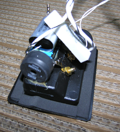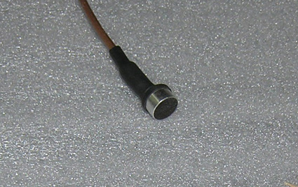 L'un des mini-microphones à électret ayant servi, placé au coeur de l'enceinte, à mettre au point le système de charge apériodique.