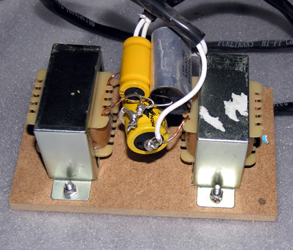 Filtre de l'Héritage B à 130 Hz à 12 dB/octave. Les selfs utilisées sont à entrefer en Mumétal, ce qui permet une forte valeur (4mH) pour une résistance totale inférieure à 0,1 ohm et l'utilisation d'un fil inférieur à 1,2mm de diamètre.